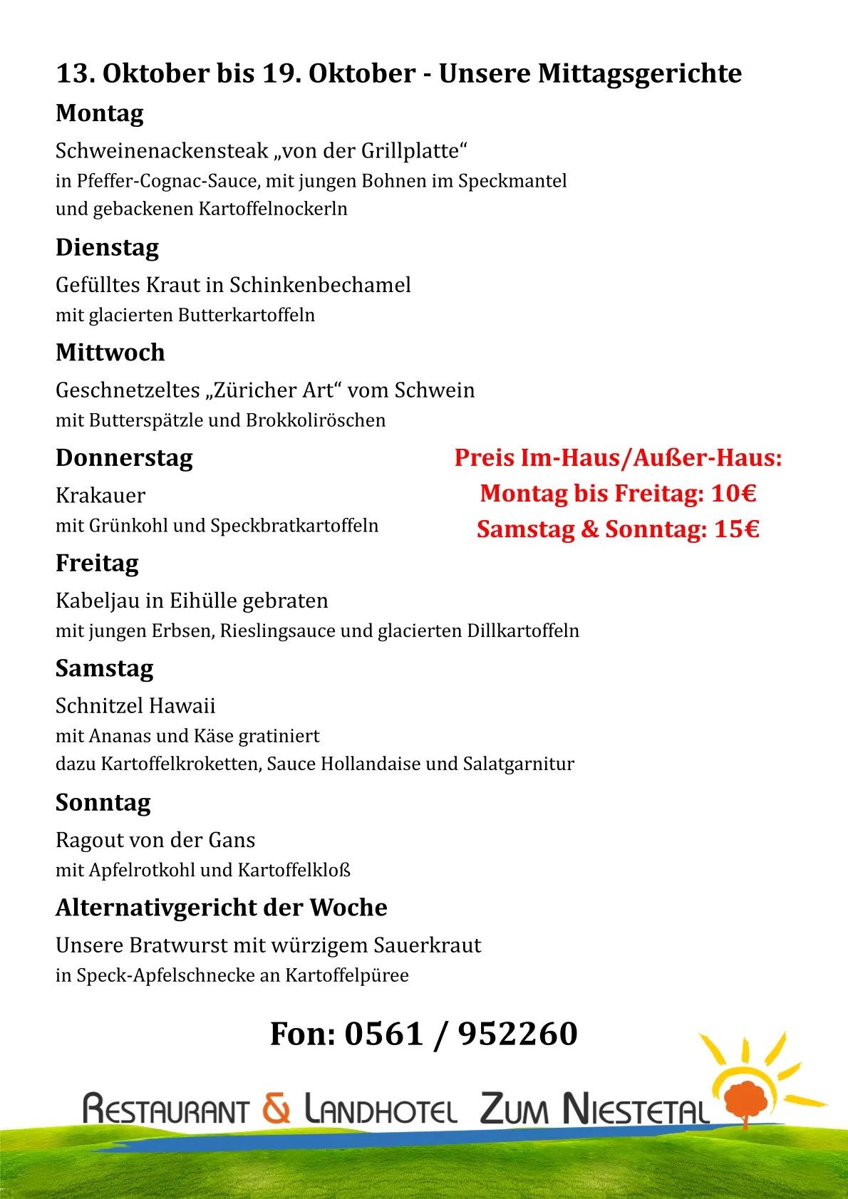 Reservierung unter: 0561 / 952260